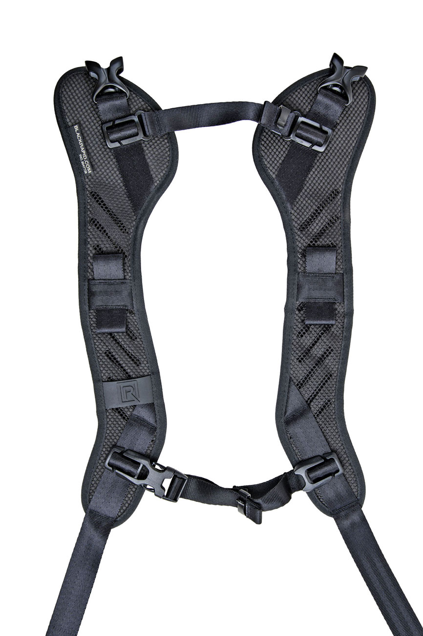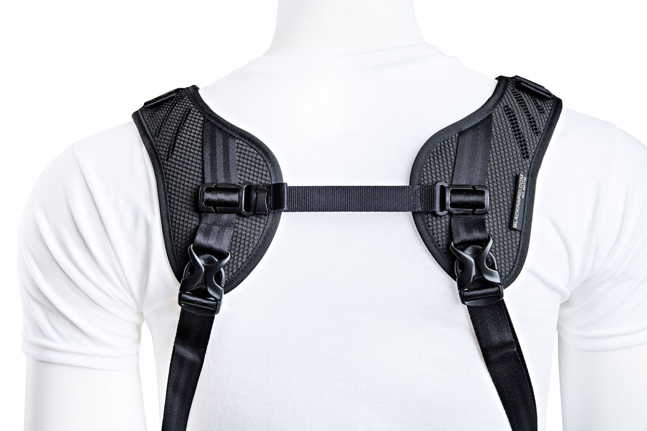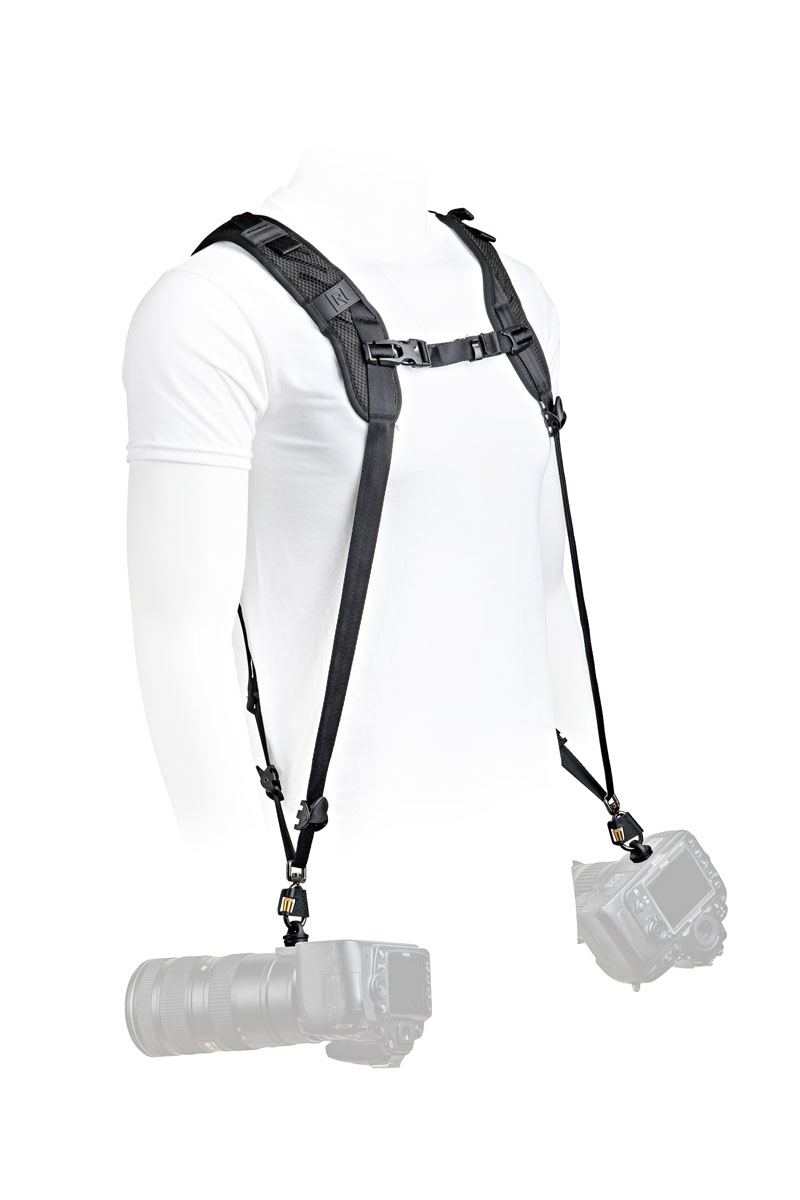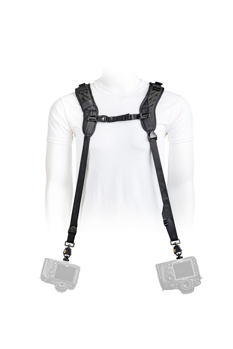 Introducing the all new BLACKRAPID Blackline II. Version II is for 2 cameras, a double camera harness. It’s the ultimate choice for photographers who demand the best. Our trusted camera strap company has taken innovation to the next level with high-tech lightweight materials and a patented shoulder pad shape designed for maximum breathability and ergonomic comfort. This harness is perfect for carrying two cameras, whether they be SLR, DSLR or Mirrorless. Join the revolution and experience the BLACKRAPID difference!