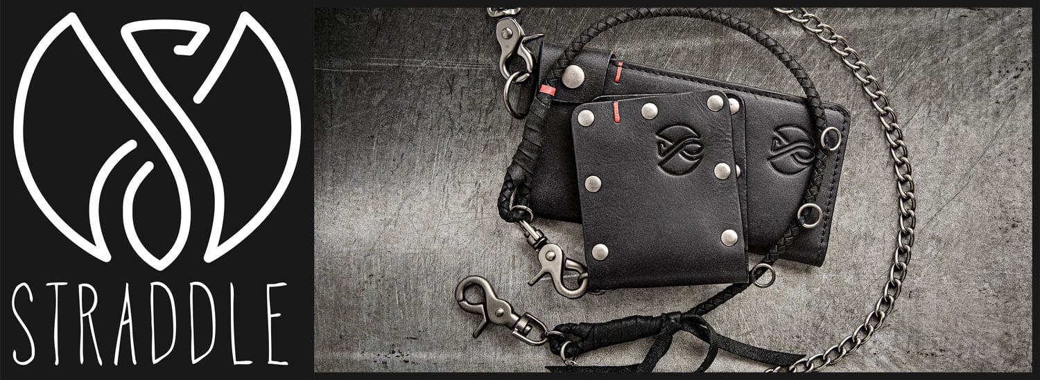 Our women’s line of Straddle products are perfect for your motorcycle lifestyle. Ball caps, leather trucker and bobber wallets with cords or chains are ready for your next adventure.